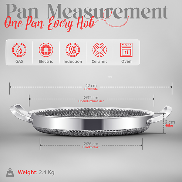 • Hybrid non-stick surface with German GREBLON® Shield Technology